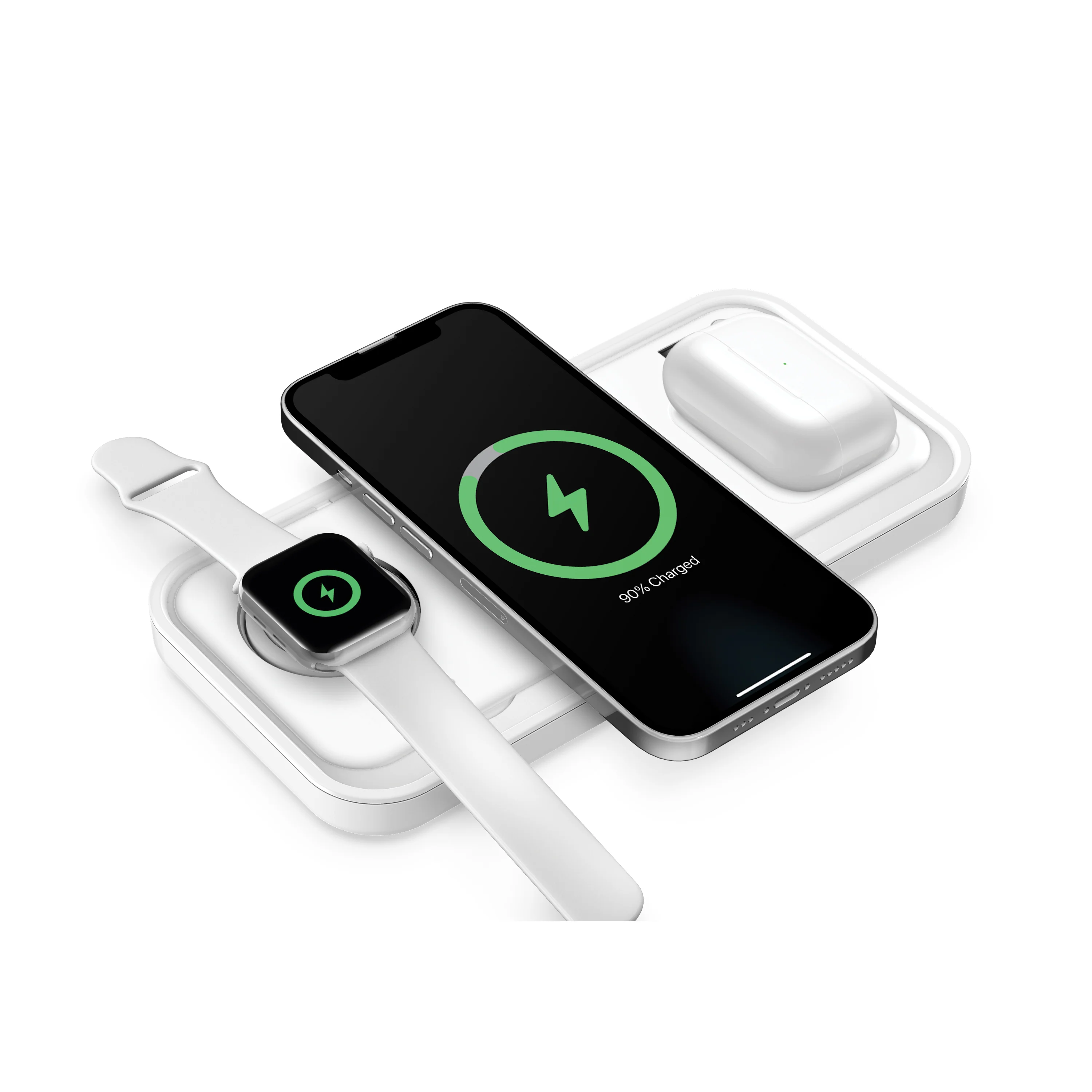 Simplify charging with the PowerVault charging station from ZIZO. Fast and convenient, charge your Apple Watch while the charging pads power up your phone and true wireless headphones all in one place. Compatible with most cases for ease of use, the ZIZO PowerVault charging station creates an all in one place to keep your devices docked, charged and ready to go anytime.